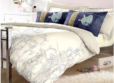 Raymond Cotton Printed Double Bedsheet 1 Bedsheet, 2 Pillow Covers, Beige||Blue- Flipkart Home Decor & Accessories Online
