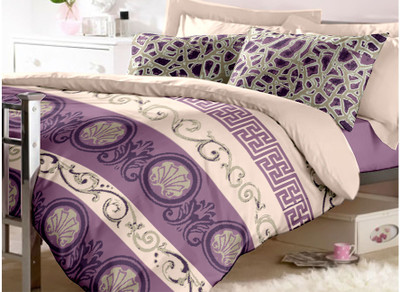 Raymond Cotton Printed Double Bedsheet 2 Pillow Covers, 1 Bedsheet, Beige||Purple- Flipkart Home Decor & Accessories Online