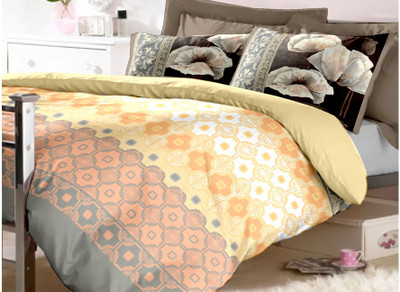 Raymond Cotton Printed Double Bedsheet 2 Pillow Covers, 1 Bedsheet, Yellow||Orange||Grey- Flipkart Home Decor & Accessories Online