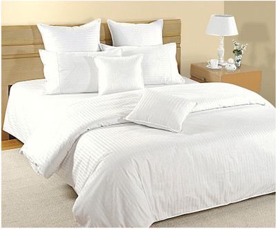 Swayam Cotton Striped Double Bedsheet Swayam Pure Moon Collection Pure White Plain Satin Damask 1 Extra Large Double Bedsheet Set with 2 Pillow Cover, White- Flipkart Home Decor & Accessories Online