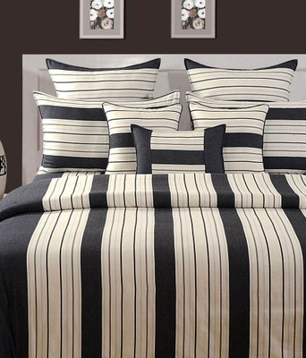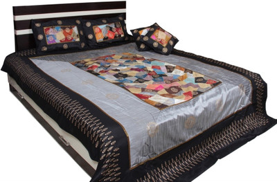 Soundarya Polyester Silk Blend Geometric Double Bedsheet 1 Bedsheet, 2 Pillow Covers, 2 Cushion Covers, Black, White- Flipkart Home Decor & Accessories Online