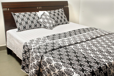Swayam Cotton Printed Double Bedsheet 1 Bedsheet, 2 Pillow Covers, Black- Flipkart Home Decor & Accessories Online