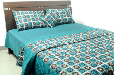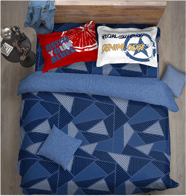 Spaces by Welspun Cotton Geometric Double Bedsheet 2 Pillow Covers, 1 Bedsheet, Blue- Flipkart Home Decor & Accessories Online
