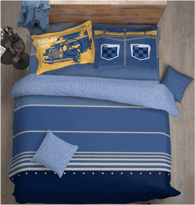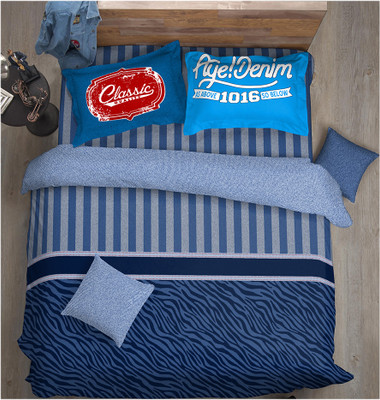 Spaces by Welspun Cotton Striped Double Bedsheet 1 Bedsheet, 2 Pillow Covers, Blue- Flipkart Home Decor & Accessories Online