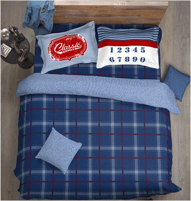Spaces by Welspun Cotton Checkered Double Bedsheet 1 Bedsheet, 2 Pillow Covers, Blue||Red- Flipkart Home Decor & Accessories Online