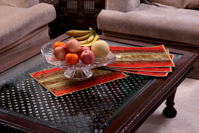 Jodhaa Velvet and Brocade Pack of 6 Table Placemat Red, Gold, Fiber- Flipkart Home Decor & Accessories Online