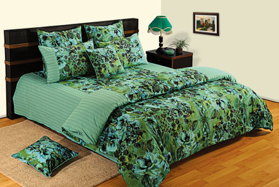 Spaces by Welspun Cotton Printed Double Bedsheet 1 Bedsheet, 2 Pillow Covers, Green||Blue- Flipkart Home Decor & Accessories Online