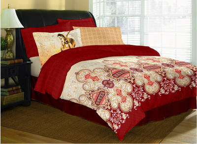 Sunshine Rajasthan Polyester Silk Blend Printed Double Bedsheet 2 Double Bedcover, 4 Cushion Covers, 4 Pillow Covers, Red- Flipkart Home Decor & Accessories Online