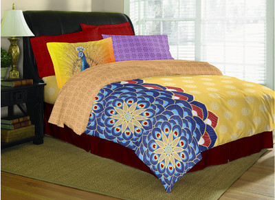 Search Spaces by Welspun Cotton Printed Double Bedsheet 4 Pillow Covers, 1 Bedsheet, Multicolor on Amazon