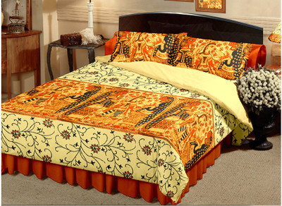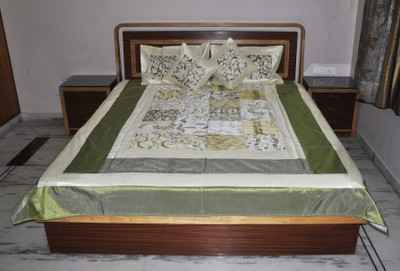 This Silk Double Bed Cover set. Bed Cover in home decor beautiful Attractive Design of India. The product represents a good example of traditional craftsmanship of Rajasthan. With matching pillow and cushion covers This double bed cover set enhances the home decor and embellishes the bed room with grace. Product Usage These double bed sheets can be used both as a Bedsheets as well as a Bedcovers. These possess charm to attract your family members, or guests at one go if used in the dining room. Disclaimer: The item being handmade, the fine design, pattern and color tone of the product may vary slightly from that shown in the image. However, there would not be any compromise in quality.