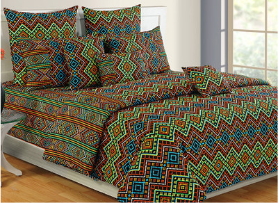 Swayam Cotton Geometric Double Bedsheet 2 Pillow Covers, 1 Bedsheet, Orange, Black, Yellow- Flipkart Home Decor & Accessories Online