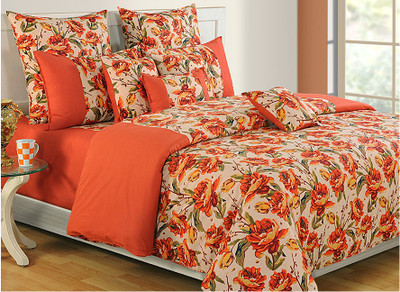 Swayam Cotton Floral Double Bedsheet 1 Bedsheet, 2 Pillow Covers, Beige, Orange, Green- Flipkart Home Decor & Accessories Online