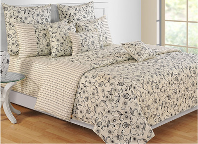 Swayam Cotton Floral Double Bedsheet 2 Pillow Covers, 1 Bedsheet, Beige, Black- Flipkart Home Decor & Accessories Online