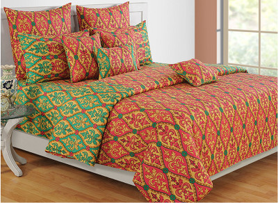 Swayam Cotton Printed Double Bedsheet 2 Pillow Covers, 1 Bedsheet, Red||Green||Beige- Flipkart Home Decor & Accessories Online