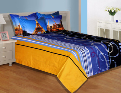 Swayam Cotton Printed Double Bedsheet 2 Pillow Covers, 1 Bedsheet, Pink, Yellow, Blue- Flipkart Home Decor & Accessories Online