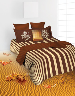 Tangerine Cotton Striped King Bedsheet 1 Bedsheet, 2 Pillow Covers, Beige, Brown- Flipkart Home Decor & Accessories Online