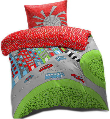 Search Spaces by Welspun Cotton Printed Single Bedsheet 1 Pillow Cover, 1 Bedsheet, Red||Green||Grey on Amazon