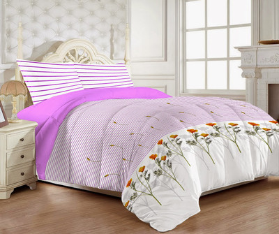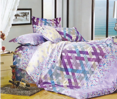 Just Linen Cotton Checkered, Geometric Double Bedsheet 1 Bedsheet, 2 Pillow Covers, Purple, Multicolor- Flipkart Home Decor & Accessories Online