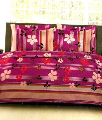 Bombay Dyeing Cotton Printed Double Bedsheet 2 Pillow Covers, 1 Bedsheet, Pink||Purple- Flipkart Home Decor & Accessories Online