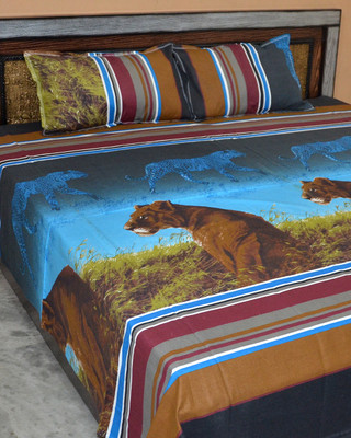Famacart Double Bedsheets Tiger Printed Decorative Bedsheets Pillow Covers