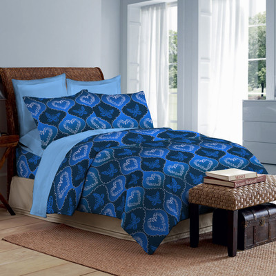 Bombay Dyeing Cotton Printed Double Bedsheet 2 Pillow Covers, 1 Bedsheet, Blue- Flipkart Home Decor & Accessories Online