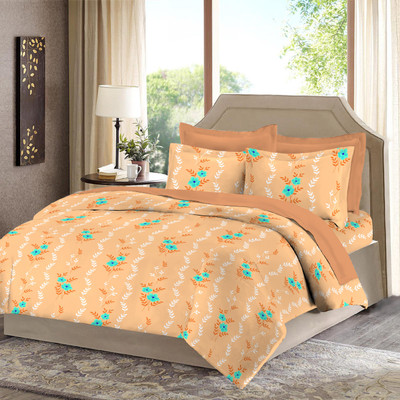 Bombay Dyeing Polycotton Floral Double Bedsheet 2 Pillow Covers, 1 Double Bedsheet, Orange||Blue- Flipkart Home Decor & Accessories Online