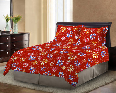 Bombay Dyeing Polycotton Floral Double Bedsheet 2 Pillow Covers, 1 Double Bedsheet, Red||Blue- Flipkart Home Decor & Accessories Online