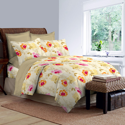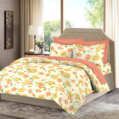 Bombay Dyeing Cotton Floral Double Bedsheet 2 Pillow Covers, 1 Double Bedsheet, Beige||Orange||Yellow- Flipkart Home Decor & Accessories Online