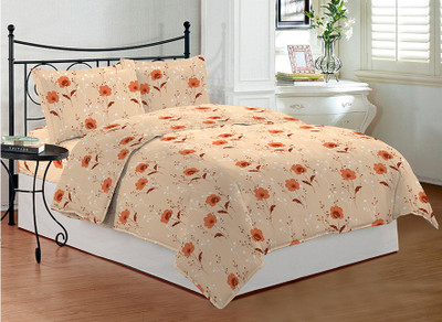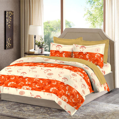 Bombay Dyeing Cotton Floral Double Bedsheet 2 Pillow Covers, 1 Double Bedsheet, Beige||Orange- Flipkart Home Decor & Accessories Online