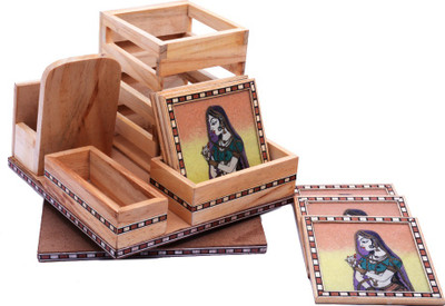 A traditional wooden office set with a beautiful tea coster for your office purpose. And It can be used for Gifting Purpose.
