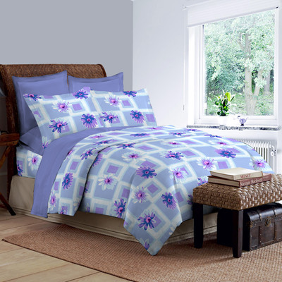 Bombay Dyeing Cotton Printed Double Bedsheet 1 Double Bedsheet, 2 Pillow Covers, Blue||Purple- Flipkart Home Decor & Accessories Online