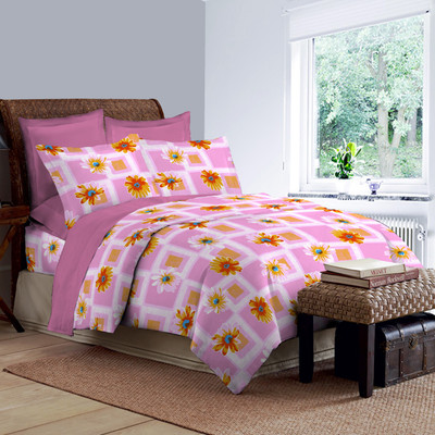 Bombay Dyeing Cotton Printed Double Bedsheet 1 Double Bedsheet, 2 Pillow Covers, Pink||Orange- Flipkart Home Decor & Accessories Online