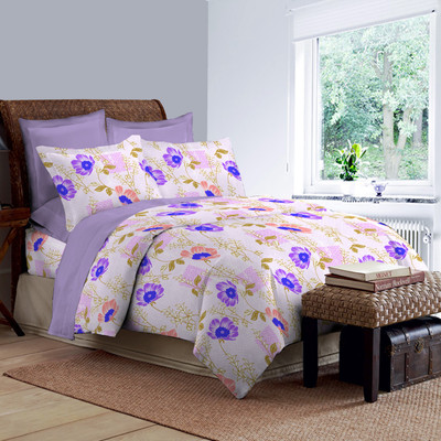 Bombay Dyeing Cotton Floral Double Bedsheet 2 Pillow Covers, 1 Double Bedsheet, Purple||Pink- Flipkart Home Decor & Accessories Online