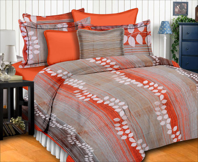 Urban style Orange Abstract Double bedsheet With 2 pillow covers