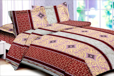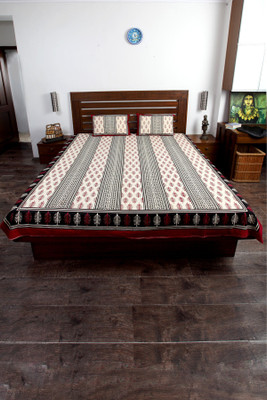 Double bedsheet set in 100% cotton made up of one printed in ivory, black and maroon colour and 2 matching pillow covers.it comes with 2 matching pillow covers in same design.