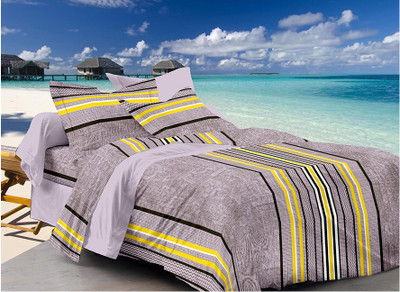 Search Fabutex Striped Double Bedsheet 1 Bed Sheet, 2 Pillow Covers, Grey||Yellow||Black on Amazon