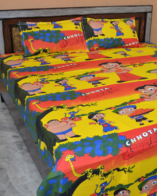Famacart Double Bedsheets Chhota Bhem Baby Printed Home Decor Bedding Pillowcases