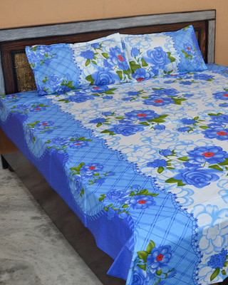 Double Bedsheets Flower Printed Bed Sheet Pillow