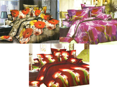 Madhavs Polycotton Printed Double Bedsheet 3 Bedsheet, 6 Pillow Covers, Multicolor- Flipkart Home Decor & Accessories Online