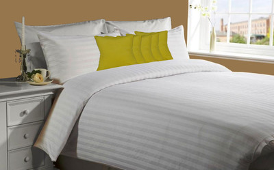 meSleep Cotton Striped Double Bedsheet 1 Bedsheet, 2 Pillow Covers, 5 Cushion Covers, White- Flipkart Home Decor & Accessories Online