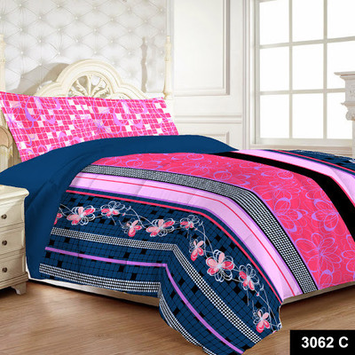 Myck pink and blue 1 double bedsheet with 2 pillow covers, manufactured according to international standard by pradip overseas - india's largest textile manufacturer.