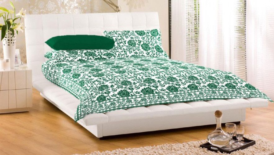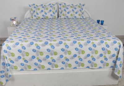 Ocean Collection Cotton Floral Double Bedsheet 1 Bedsheet, 2 Pillow Covers, Green, White- Flipkart Home Decor & Accessories Online