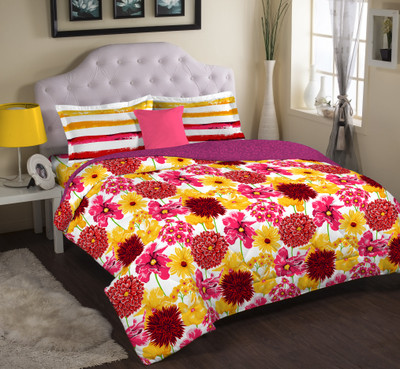 Portico New York Cotton Floral Double Bedsheet 2 Pillow Covers, 1 Bedsheet, Yellow||Pink||White- Flipkart Home Decor & Accessories Online