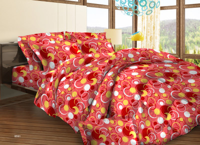 Bombay Dyeing Cotton Geometric Double Bedsheet 1 Bed Sheet with 2 Pillow Covers, Red- Flipkart Home Decor & Accessories Online