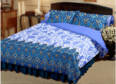 Raymond Cotton Printed Double Bedsheet 2 Pillow Covers, 1 Bedsheet, Blue||White- Flipkart Home Decor & Accessories Online