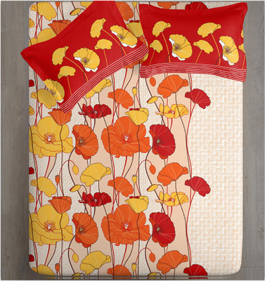 Spaces by Welspun Cotton Printed Double Bedsheet 1 Bedsheet, 2 Pillow Covers, Yellow||Red||Orange- Flipkart Home Decor & Accessories Online