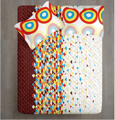 Spaces by Welspun Cotton Geometric Double Bedsheet 1 Bedsheet, 2 Pillow Covers, Multicolor- Flipkart Home Decor & Accessories Online