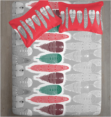 Spaces by Welspun Cotton Printed Double Bedsheet 1 Bedsheet, 2 Pillow Covers, Grey||Red- Flipkart Home Decor & Accessories Online