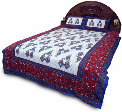 Search Sunshine Rajasthan Cotton Floral Double Bedsheet 1 Double Bedsheet, 2 Pillow Covers, Blue on Amazon