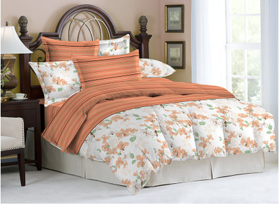 Bombay Dyeing Cotton Printed Single Bedsheet 1 Pillow Cover, 1 Bedsheet, Grey, Orange- Flipkart Home Decor & Accessories Online